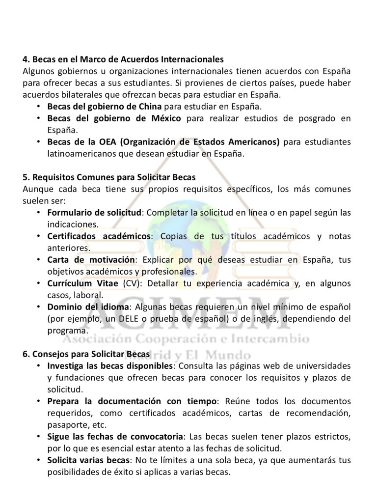 •Requisitos: Dependiendo del programa, los requisitos pueden variar, pero generalmente se requiere un buen expediente académico y conocimiento del español (aunque algunas becas están en inglés).